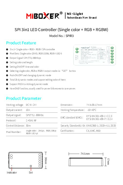 SPIR3 kontroller on mõeldud Pixel LED-ribade juhtimiseks ning kasutab 2.4GHz juhtmevaba edastustehnoloogiat.