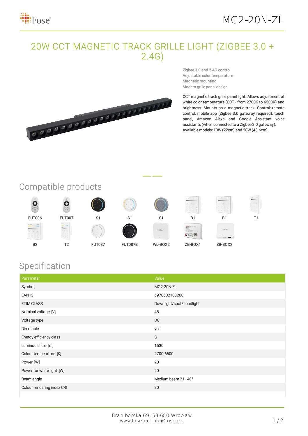 CCT lineaarne suundvalgusti magnetsiinile (Zigbee 3.0 + 2.4G).